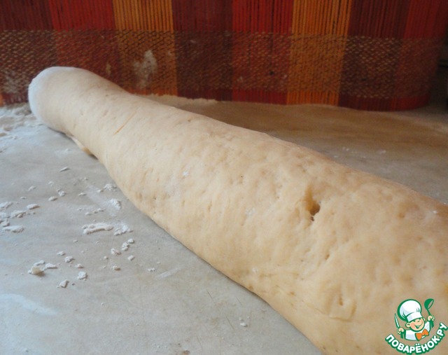 Тесто раскатываем в пласт около 1,5 см толщиной.