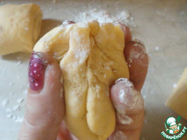 С одного конца "стягиваем" тесто и защипываем кончик.