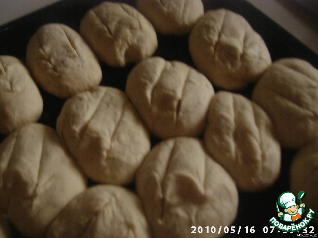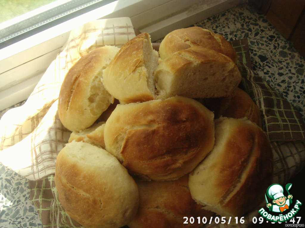 Формуются круглые булочки из каждого кусочка, дается расстойка 50 минут и выпекаются с паром при температуре 190 град. (для духовок без конвекции) или 180 град. (для духовок с конвекцией) 14-16 минут.