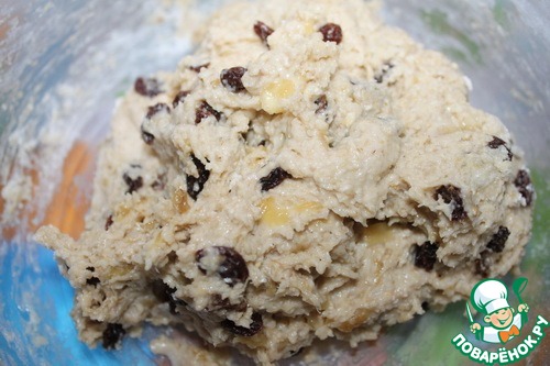 Сформировать булочки, выложить на противень. Тесто липкое, руки можно смазать растительным маслом.