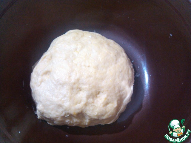 Приготовим тесто: в молоке разведем дрожжи, добавим обычный и ванильный сахар, слегка взбитые яйца, масло, соль. Постепенно всыплем муку, ее нужно столько, чтобы тесто было мягкое и не липло к рукам. Дать ему как следует подняться в теплом месте.