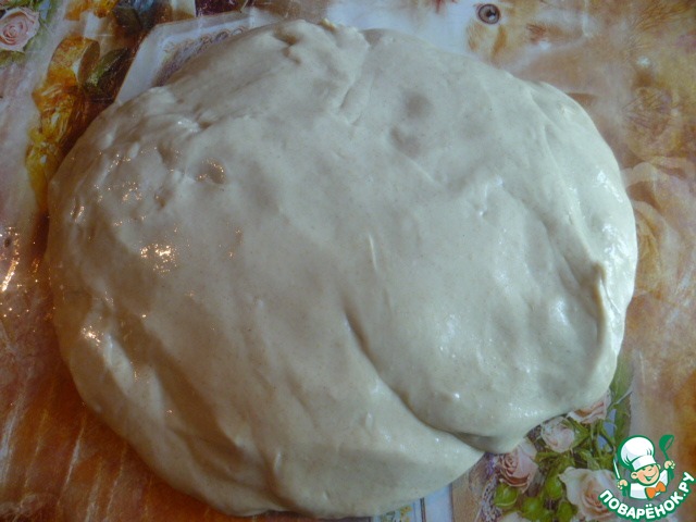 Выкладываем тесто смазанными руками растительным маслом на стол также смазанный растительным маслом.