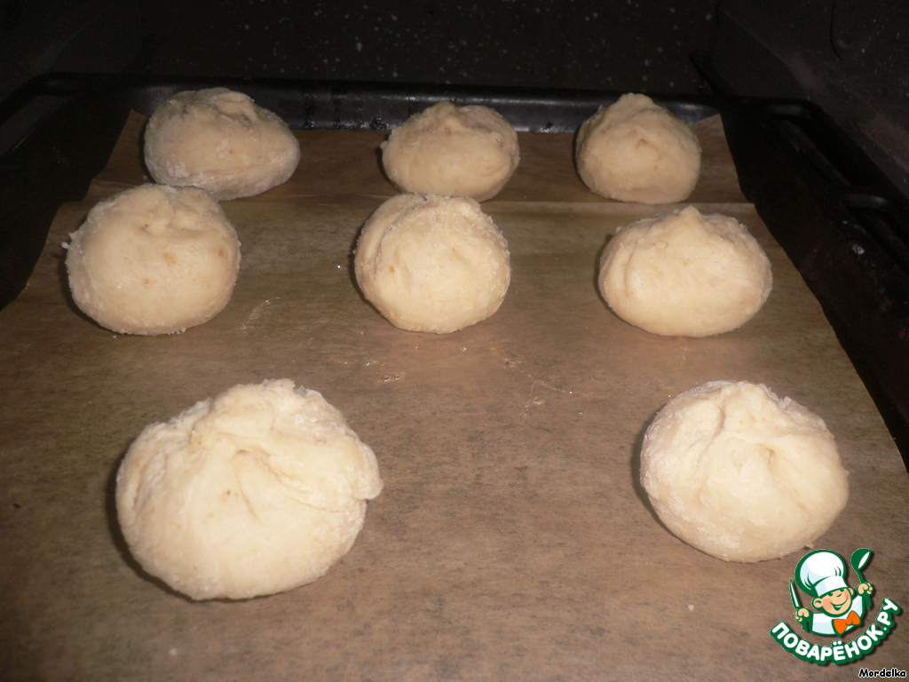 Противень выстлать буиагой для выпекания. Выкладываем булочки.