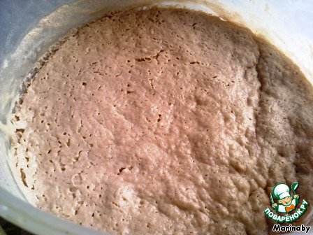 Делаем опару: разводим стакан муки с 1 ч.л. дрожжей в одном стакане воды, смешанной с молоком, размешиваем и оставляем на 2-3 часа в теплом месте.