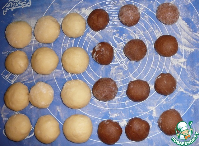 После расстойки из каждого теста скатаем по 12 шариков. Прикрыть их полотенцем и дать постоять 15-20 минут.