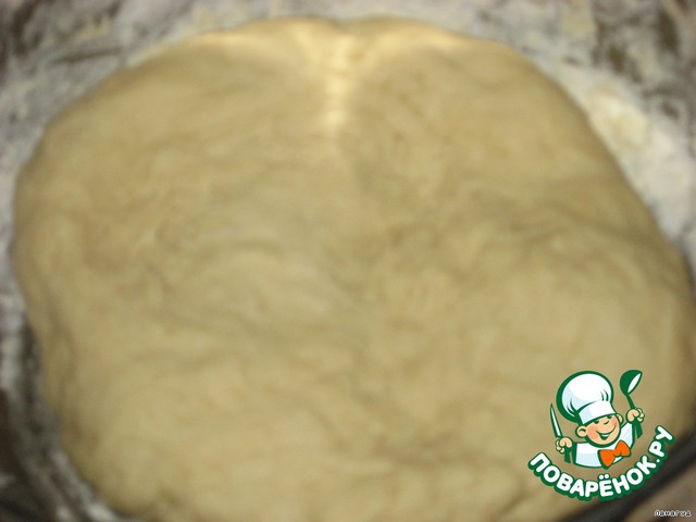 В теплой воде размешать третью часть муки, половину сахара и дрожжи. Оставить в теплом месте. Через 15-20 минут опара запузырится. После этого добавить остальные ингредиенты, накрыть миску с тестом и оставить в теплом месте на 2 часа для подъема.