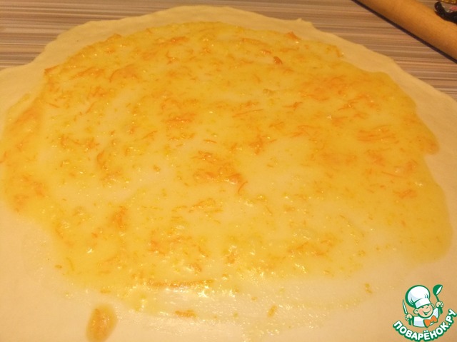 Раскатываем тесто в пласт. Уверена у Вас получится ровнее (я в раскатывании не сильна)