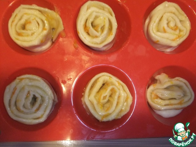 Помещаем булочки в форму для запекания. Оставляем до подъема.