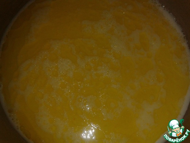 В теплом молоке растворите сахар, и влейте растопленное сливочное масло.