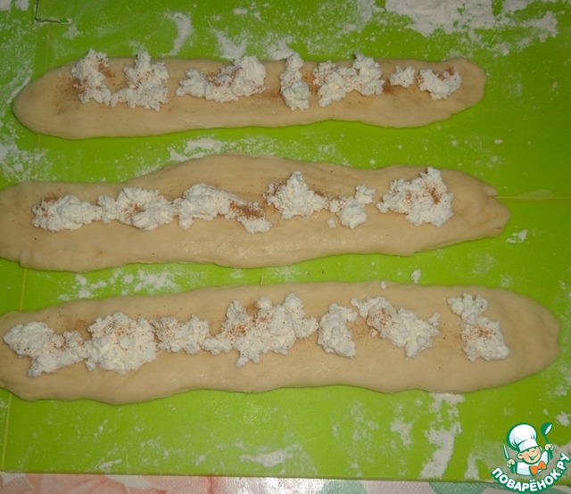 | Булочки в виде косичек с ароматной начинкой из творога и корицы. |