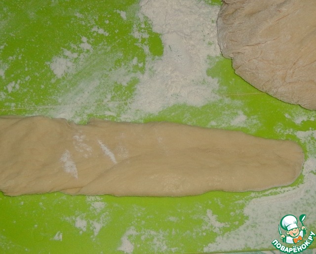 От готового теста отщипываем небольшой кусочек и делаем из него полоску.
