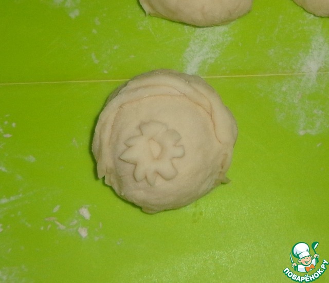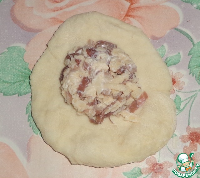 Из теста сделать лепешки, на каждую из них кладем начинку.