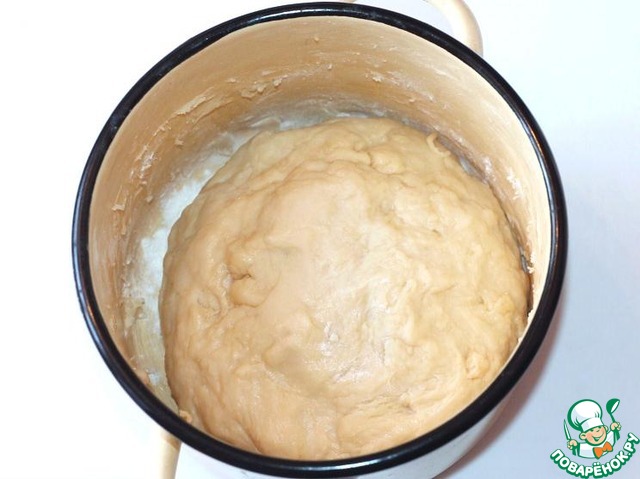 Замесить тесто, накрыть полотенцем и поставить подходить в теплое место на 30 мин. для подъема в два раза.