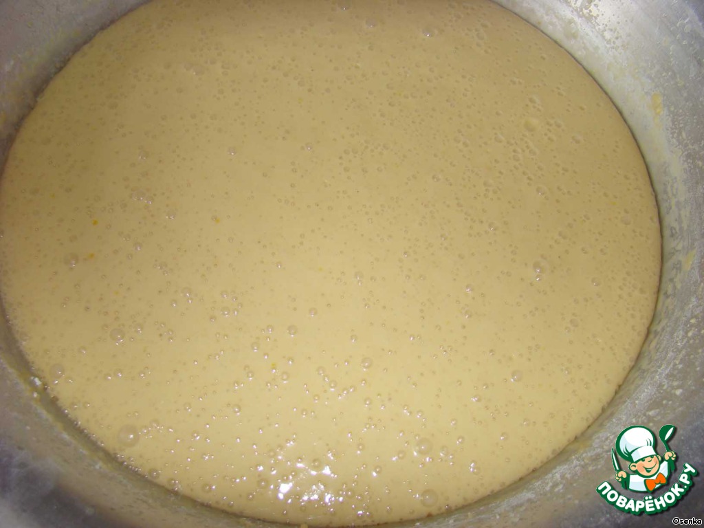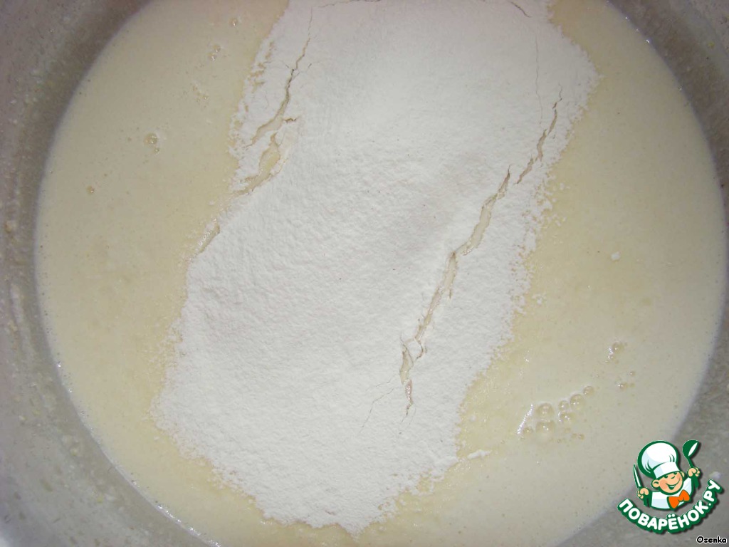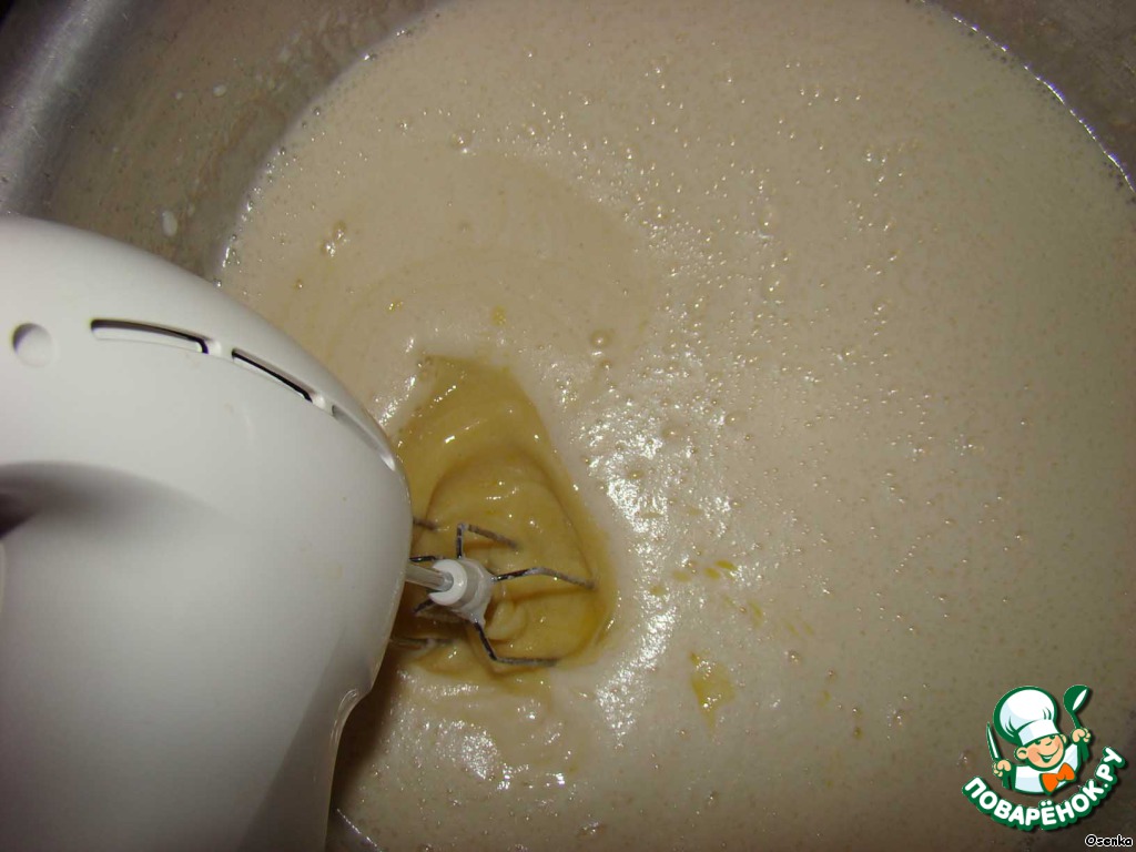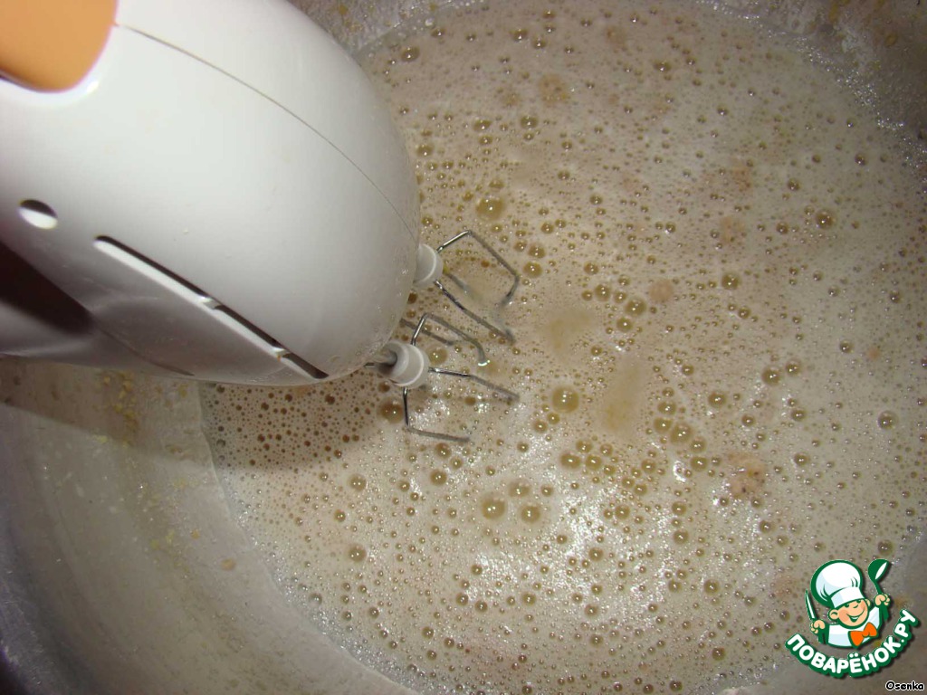 Смешать молоко с дрожжами и взбитыми желтками. Хорошо взбить.