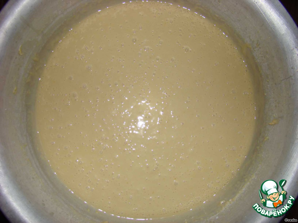 Всё хорошо смешать, поставить в тёплое место, накрыть полотенцем. Так выглядит "первоначальное" тесто.