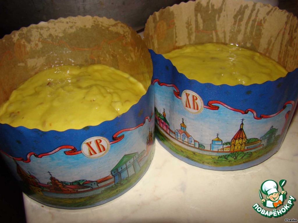 | Этот старинный рецепт достался нам от бабушки подруги. Куличи получаются «тяжeлые и мокрые», если вам нравятся именно такие, то вам сюда. Они очень вкусные, но приготовление довольно трудоeмкое и занимает много времени. Тесто может подходить долго, по 3 -5 часов. Всe зависит от дрожжей. По рецепту дрожжи живые, но пакетики зарекомендовали себя лучше. Как-то раньше бывали случаи, когда тесто практически вообще не подходило (наверно, не везло с дрожжами), но куличи всe равно были вкусные. |