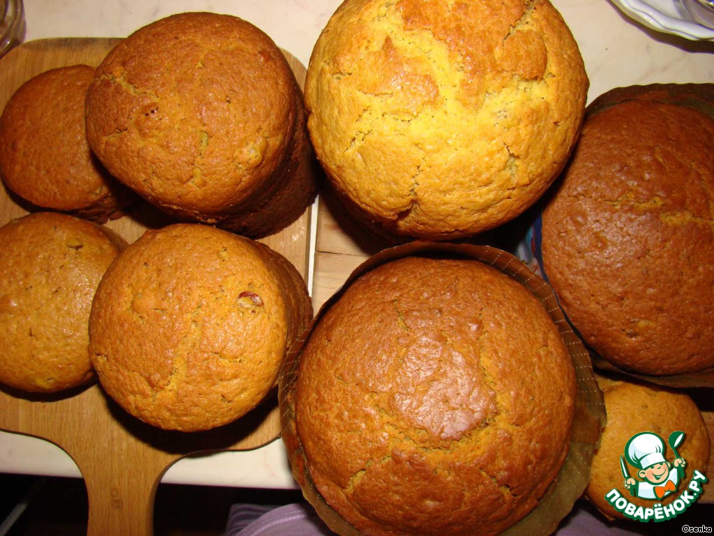 Разложить тесто по формам, смазанным маслом, дать подняться. Форму заполнять на 2/3. Бумажные формы можно не смазывать.