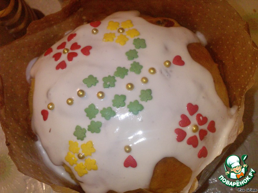| Завтра у меня много беготни и пришлось сегодня <<отстреляться>> на кухне... Сообразив уху, сделав 2 больших разных пирога, силы остались только на творчество... Потому вышли у меня вот такие куличи, может кому-то как раз к завтрашнему дню пригодится... |