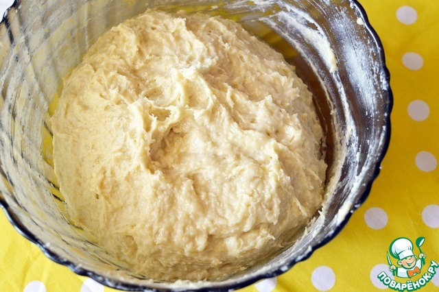 И в последнюю очередь размягченное сливочное масло. Хорошо все перемешиваем и получаем жидковатое тесто, которое заворачиваем пищевой пленкой и убираем в холодильник на 6-8 часов (на ночь)!