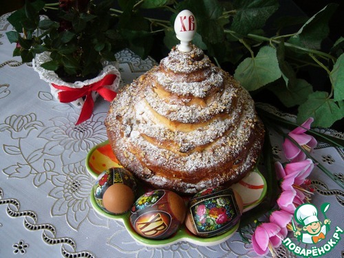 | У меня, как и у многих, есть свой, проверенный и любимый рецепт кулича. Но я не могу пройти мимо какого-то нового и интересного рецепта. Им оказался рецепт кулича в виде пирамиды, характеризующий гору Голгофу-место распятия Иисуса Христа, а при приготовлении теста понадобится всего лишь половина яйца! И, конечно же, я его испекла-кулич получился вкусный, пушистый, сдобный и какой-то невесомый что-ли. А добавление в него шафрана придает ему особую нотку |