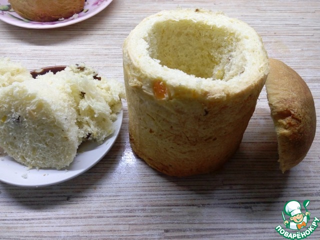 Выпекаем куличи в духовке 35-45 минут, при 180С, пока верх хорошо не зарумянится. В ковше у меня очень сильно поднялся и получился гриб :)