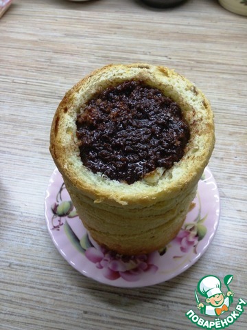 Наполняем панеттоне шоколадной массой и закрываем крышечкой.