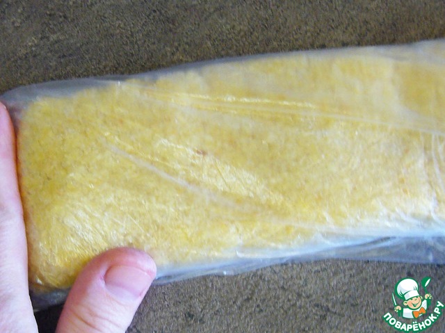 Все тщательно перемешать, сделать плоские полоски, накрыть пищевой пленкой и убрать в холодильник на 30 минут.