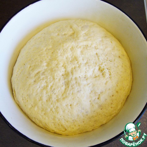 Накрыть тесто пленкой и оставить в тёплом месте подходить примерно на час.