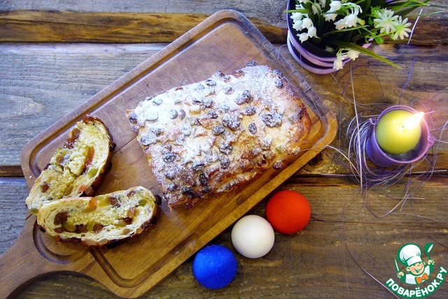 | Голландский сладкий хлеб. Выпекать такой хлеб желательно за несколько дней до Пасхи. Голландцы называют свой кулич "хлеб на Пасху" и едят его на завтрак в Пасхальное воскресенье. Хлеб, в котором общий вес начинки (изюм, цукаты, орехи) превышает вес муки. |