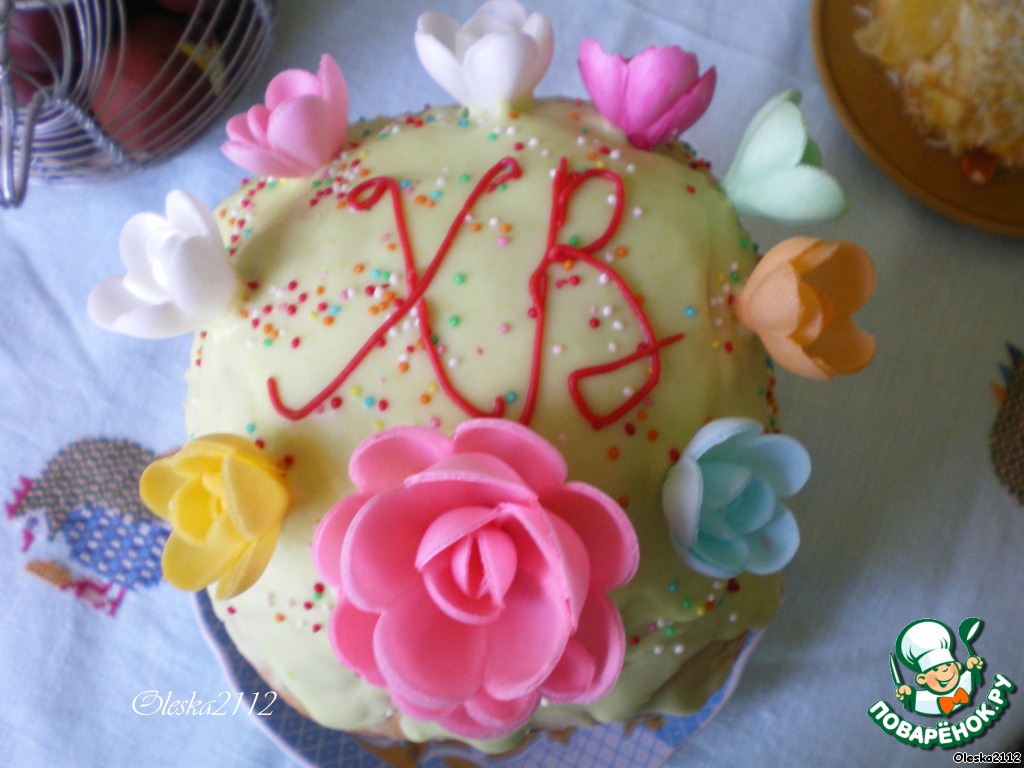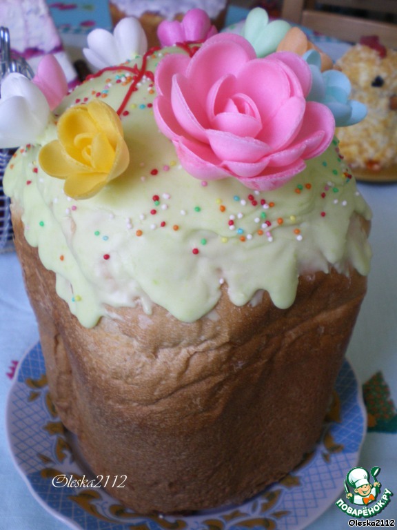 Остывший кулич покрываем глазурью и украшаем как вам нравится. Это мой вариант.
