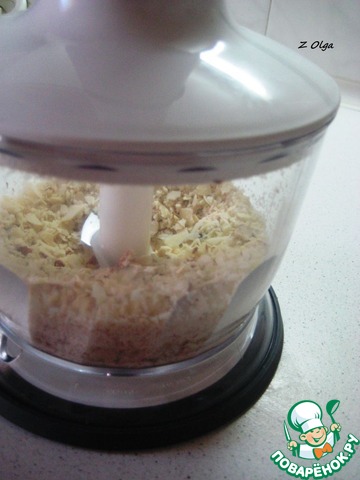 Измельчаем 100 гр орехов (можно использовать и грецкие и миндаль, по вкусу).