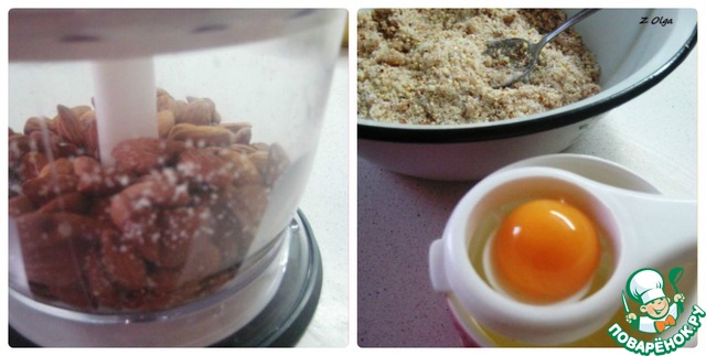 Измельчаем миндаль в муку, смешиваем с сахаром и лимонным соком. Добавляем желтки. Все хорошенько перемешиваем.