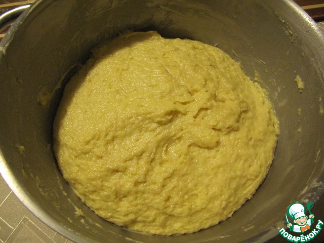 Тесто в самом начале замеса чуть гуще теста на оладьи, вот оно какое: