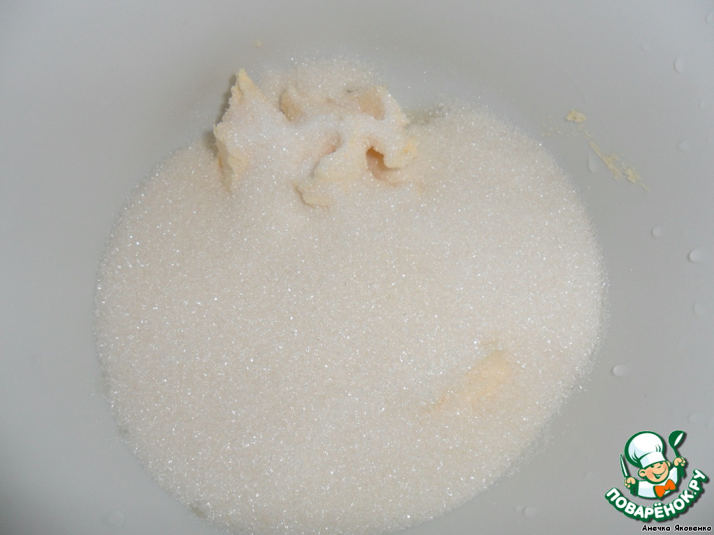 Растереть масло с сахаром.