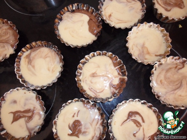 Выкладывать тесто в формы ложкой, чередуя светлую и темную массу.