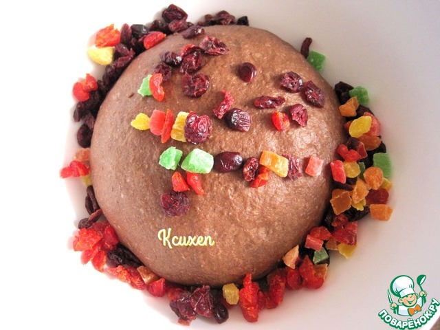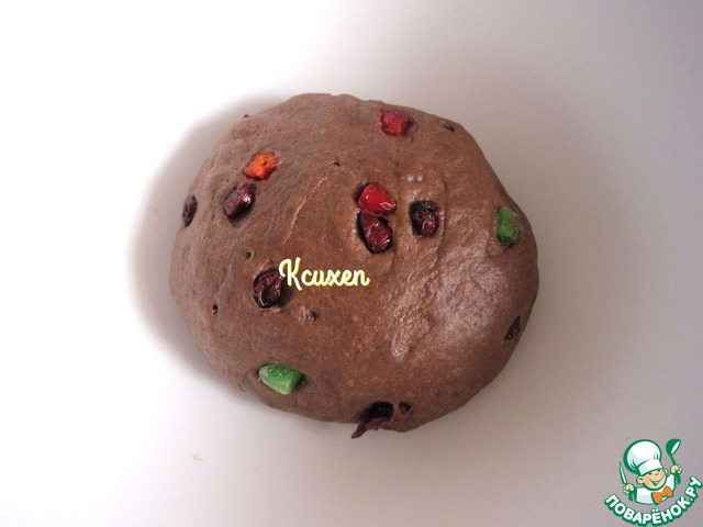Вмешаем ягоды и цукаты в тесто. На этом этапе тесто совсем не липнет, оно приятное, послушное и очень красивое! :)