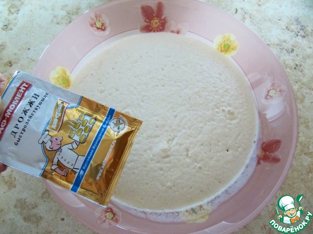 250 мл молока чуть подогреть, всыпать 1 ч л сахара и растворить в них сухие быстродействующие дрожжи "САФ-МОМЕНТ" для сдобы, подождать до образования пенной шапочки. При использовании этих дрожжей тесто легко раскатывается и не сжимается. Готовые изделия имеют ванильный вкус и восхитительный аромат.
