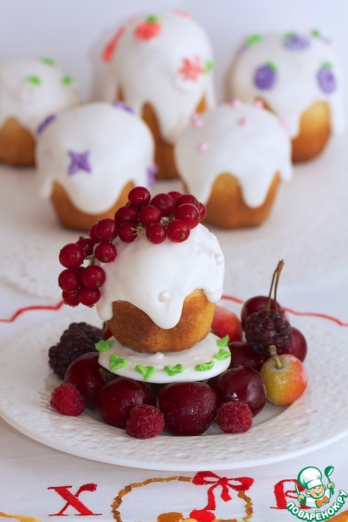 Для подруги, которая на диете, приготовила десерт с мини куличиком и ягодами (использовала замороженные черешню, малину, ежевику, можно использовать сезонные фрукты по-своему вкусу ). А я отрежу себе кусочек вот этого кулича!