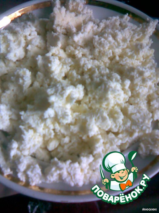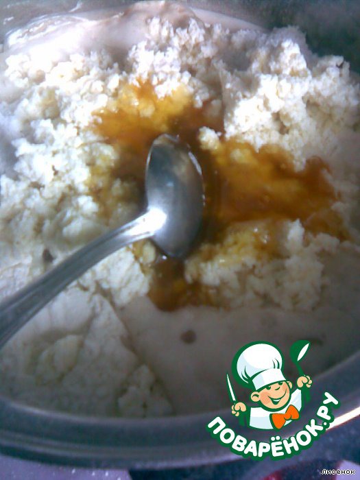 размять творог.Творог я брала собственного приготовления по рецепту Ирины(FEDERAL).