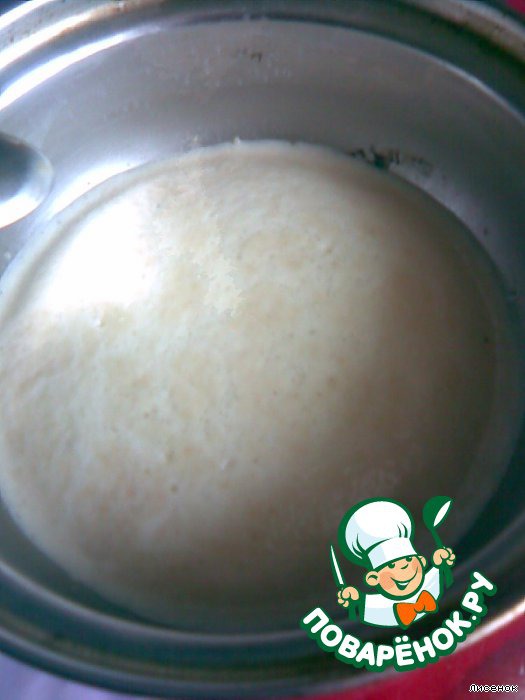 готовим опару-1 ч.л сахара,дрожжи и 100 мл сыворотки смешать и дать постоять 15-20 минут