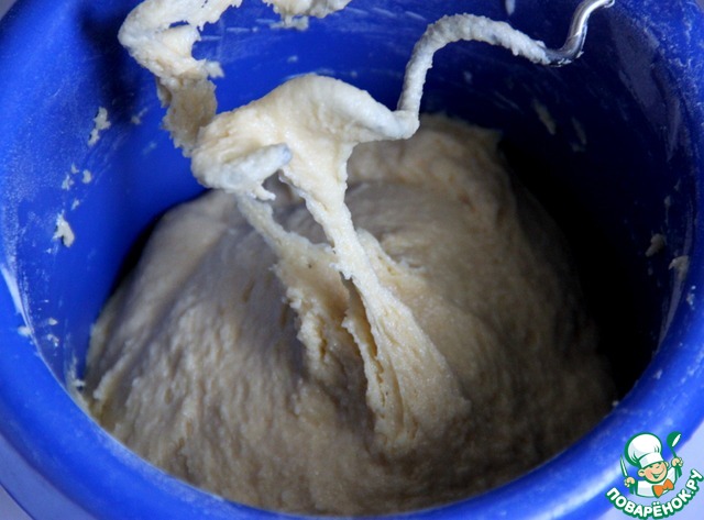 Вымешать все тщательно миксером со спиральными венчиками минут 10-15, до тягуче-медовой консистенции, как на фото. Тесто должно быть очень эластичным и НЕ жидким. В случае необходимости - добавить в конце немного муки... Тесто готово, когда свободно отстает от стенок посуды, но в то же время еще будет медово-липким