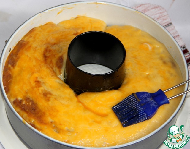 Форму для запекания смазать раст. маслом. В обычную круглую форму можно вставить стакан или баночку по середине.