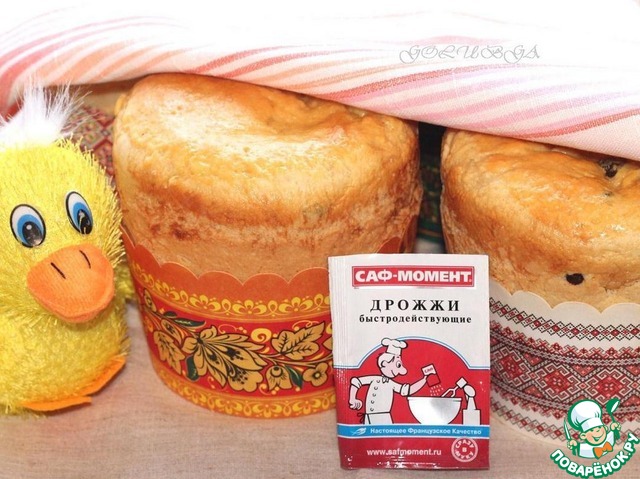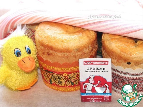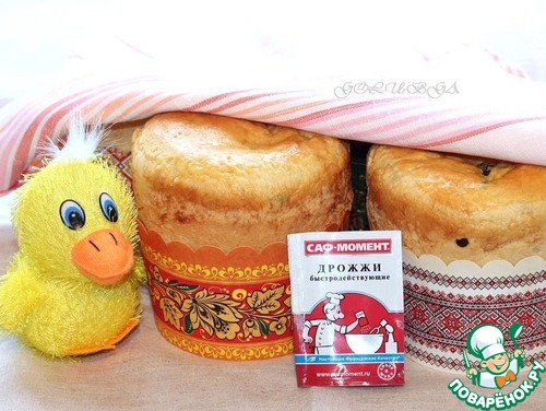 Затем смазываете куличи взбитым с щепоткой сахара желтком. И ставите куличи в хорошо разогретую до 180 С духовку, выпекаете до готовности, минут 40. Готовность кулича можно проверить, проткнув его острой, деревянной палочкой: если она сухая - кулич готов. Желательно 30 мин. не открывать духовку, чтобы не опал кулич.