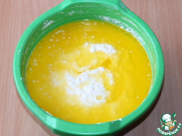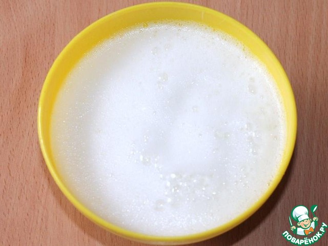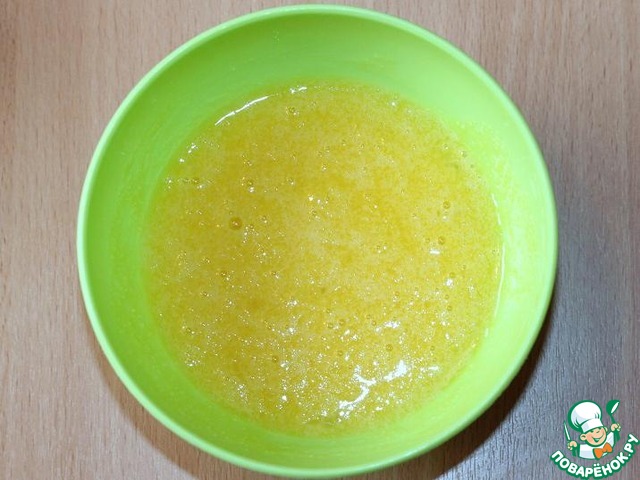 А в это время приготовим тесто. Отделяем белки от желтков. Растираем желтки с оставшимся сахаром и ванильным сахаром.