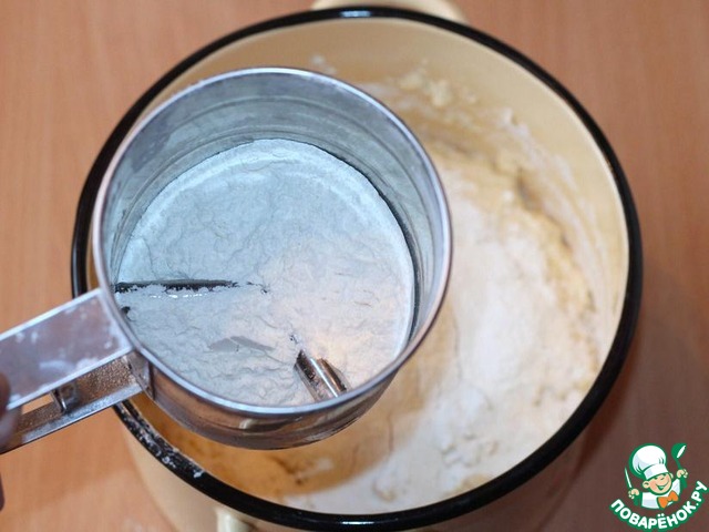 Небольшими частями добавляем оставшуюся муку (просеянную) и замешиваем тесто.