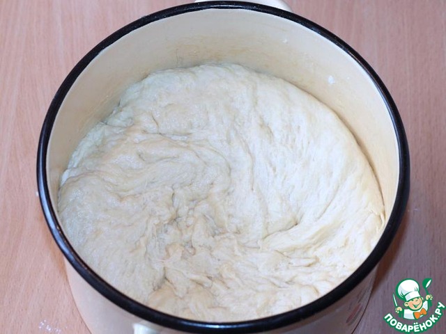 и добавить в тесто, хорошо вымешать. Накрываете кастрюлю с тестом полотенцем, и ставите в теплое место, оно должно подняться в два раза. Первый раз обминаете тесто и снова ставите под полотенце в теплое место,