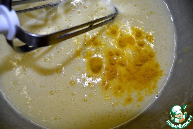 Добавить куркуму, ванилин и апельсиновую цедру.