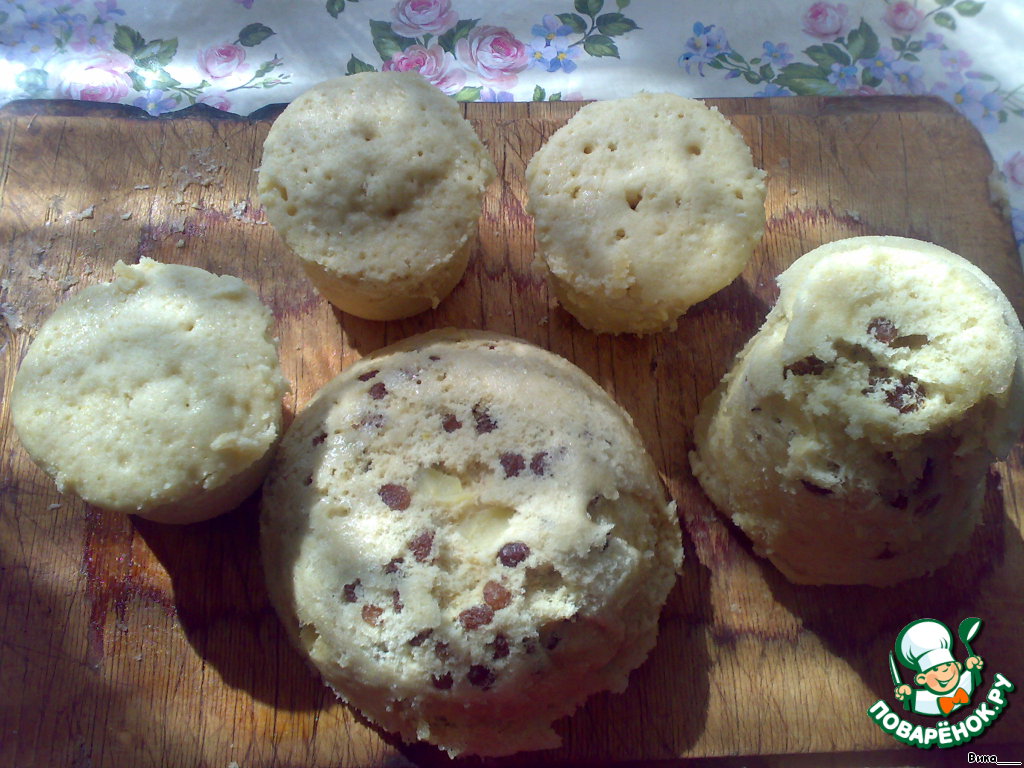 Выливаем тесто в формы (у меня просто чашки) и ставим в СВЧ на 10 мин.