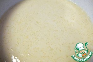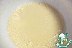 Когда на поверхности яично-дрожжевой смеси появятся пузырики, добавить растопленное масло, перемешать.