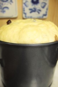 Наполняем тестом форму для кулича наполовину. И оставляем для расстойки еще минут на 10.